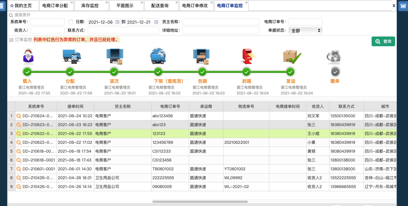 面向基于ToC电商仓的物流管理,支持PC,PDA和快递发货。包括订单管理、入库管理、存货管理、加工包装、发货管理、统计分析、绩效管理等,支持淘宝、天猫、拼多多等电商平台的订单接口,也提供在线客服模块。