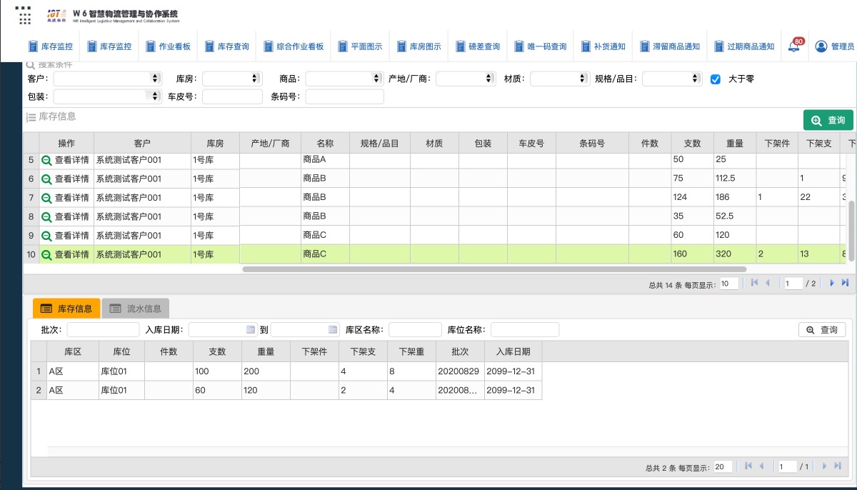面向三方仓储和商贸仓储部门,完成入出库单据和台账处理,期间库存监控、移位/盘点/加工等库内作业,财务结算,作业班组人员计件绩效等,也提供客户在线下单、查库等自助服务。