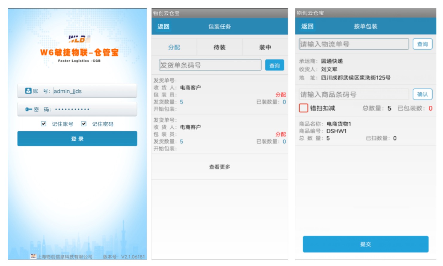 面向基于ToC电商仓的物流管理,支持PC,PDA和快递发货。包括订单管理、入库管理、存货管理、加工包装、发货管理、统计分析、绩效管理等,支持淘宝、天猫、拼多多等电商平台的订单接口,也提供在线客服模块。
