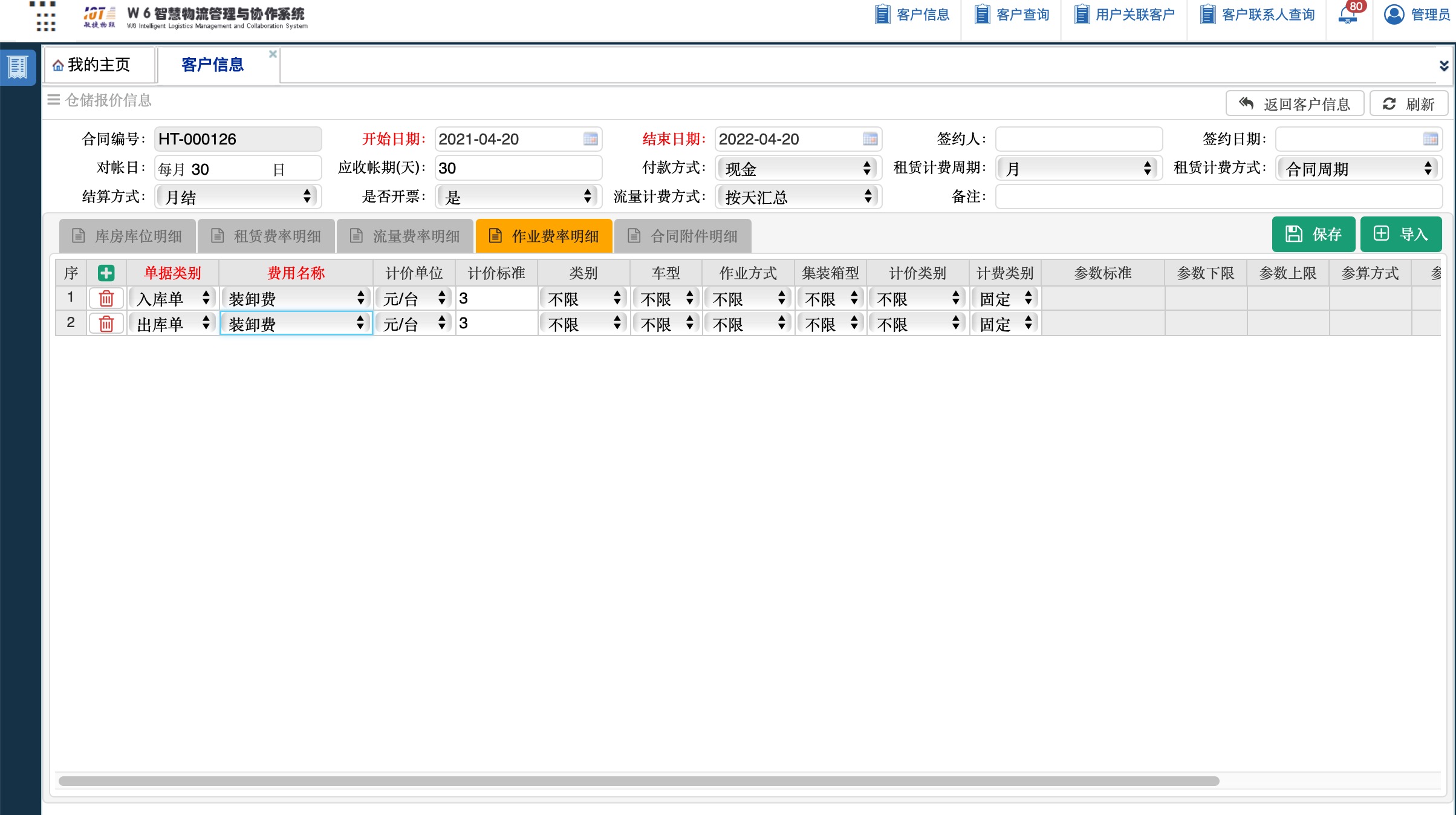 面向三方仓储和商贸仓储部门,完成入出库单据和台账处理,期间库存监控、移位/盘点/加工等库内作业,财务结算,作业班组人员计件绩效等,也提供客户在线下单、查库等自助服务。